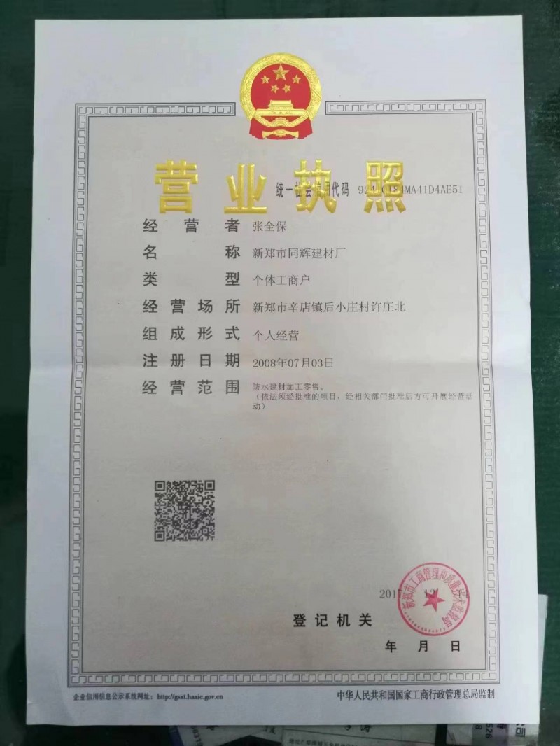 | 發(fā)證機(jī)構(gòu): | 新鄭市工商管理和質(zhì)量技術(shù)監(jiān)督局 | 發(fā)證時(shí)間 : | 2017-12-11 |