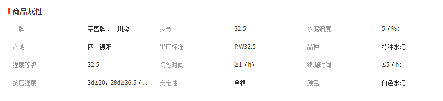 宗盛牌、白川牌32.5級白水泥(P·W-1 32.5)