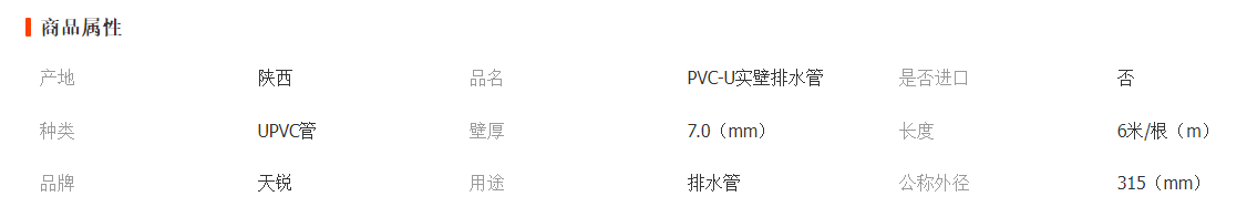 陜西天科塑料管道廠家 大口徑pvc-u實(shí)壁排水管 工程用排水管材315