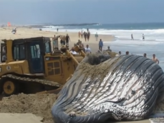 巨大鯨魚擱淺海灘,救援人員用推土機(jī)不小心推死!